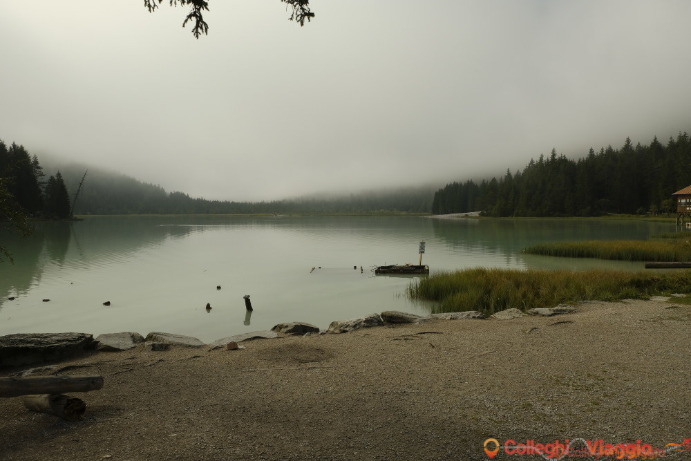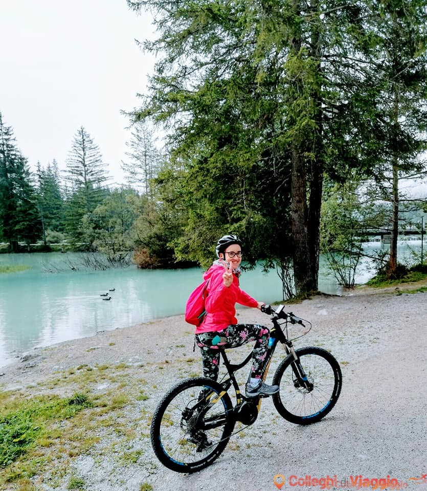 Dopo circa 2 km, si raggiunge il Lago di Dobbiaco. Una breve pausa per scattare qualche foto (al mattino dal lago sale una leggera foschia che crea un’atmosfera quasi surreale), e poi via di nuovo in sella.