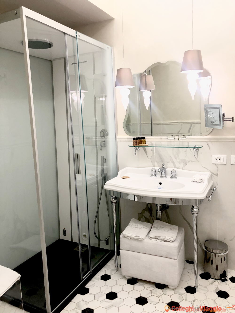 Camera veramente pulita sia la stanza che il bagno. Spazi molto grandi che non ha deluso le nostre aspettative.