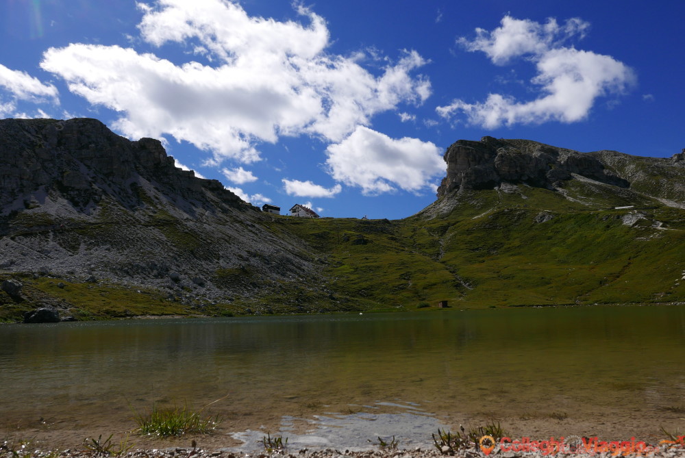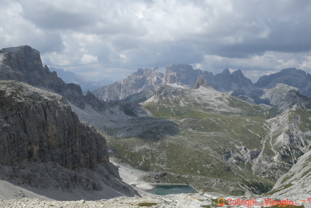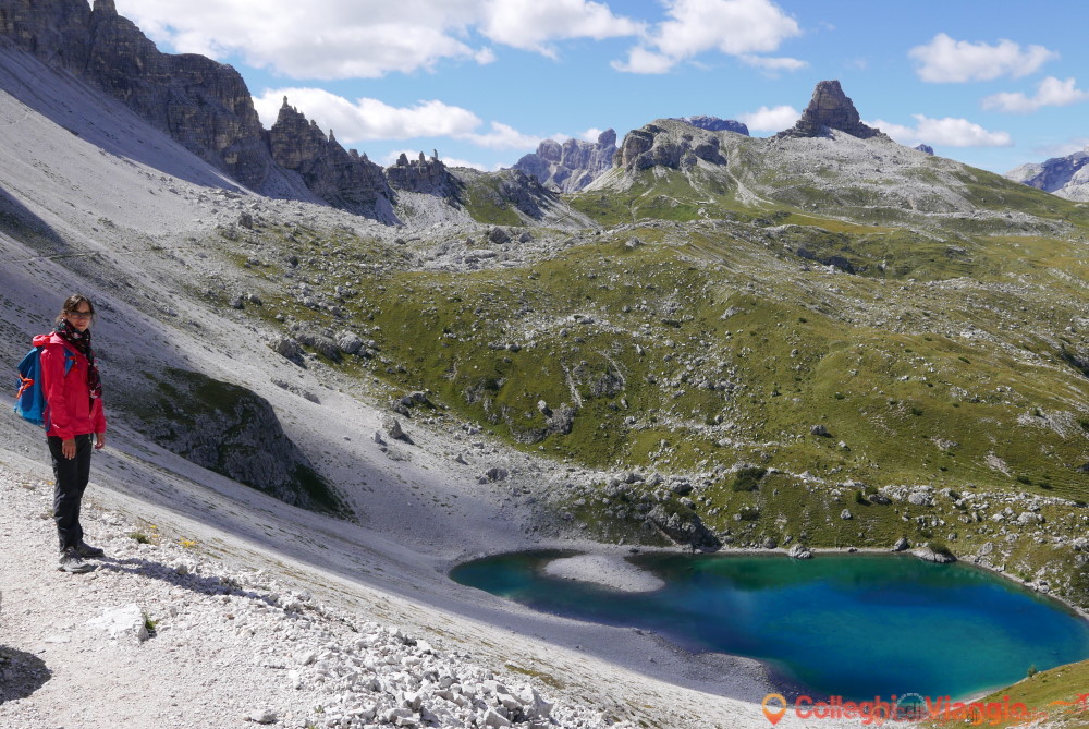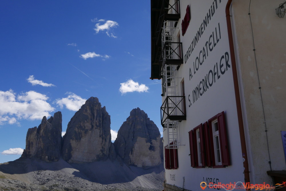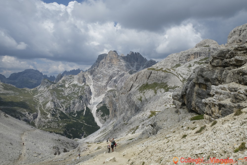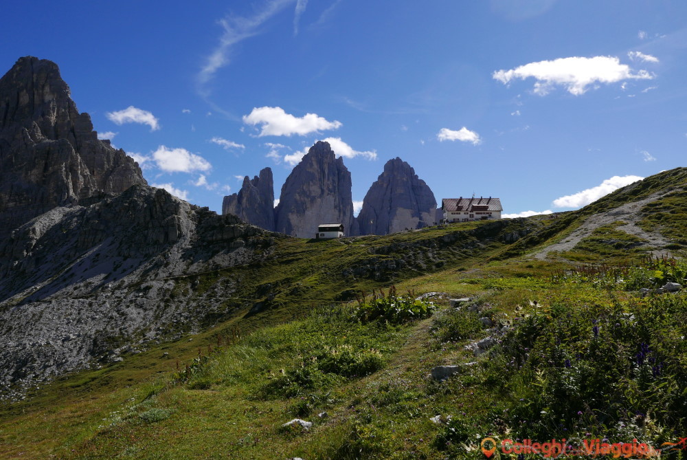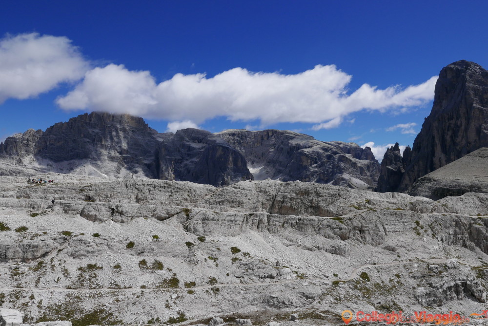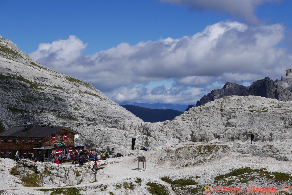 Dopo la sosta, si continua sul segnavia n.101 scendendo ripidamente attraverso dei detriti. In seguito il sentiero si fa pianeggiante sino a raggiungere il Rifugio Locatelli e le Tre Cime.